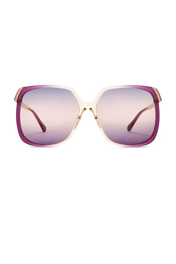 Chloe Square Sunglasses in Burgundy, Gold, & Violet | REVOLVE