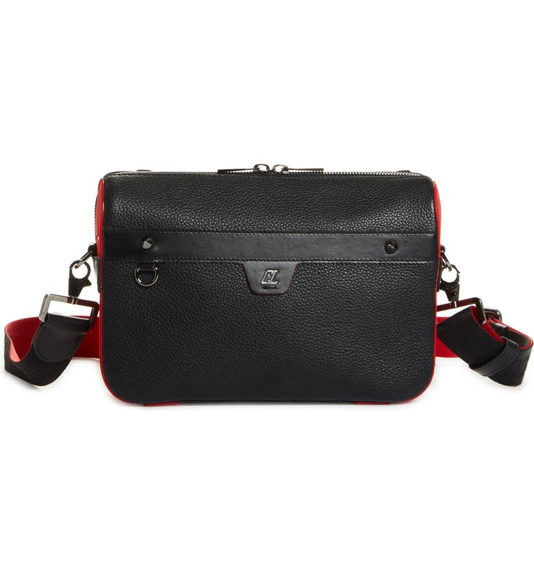 Christian Louboutin Ruisbuddy Leather Crossbody Bag, Main, color, BLACK/ LOUBI/ BLACK