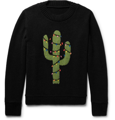 Christmas Light Cactus Intarsia Cashmere Sweater