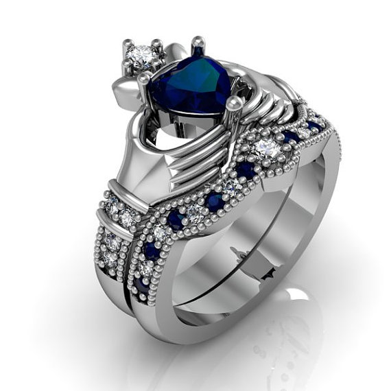 Claddagh Ring - Created Blue Sapphire Sterling Silver Love and Friendship Engagement Ring Set