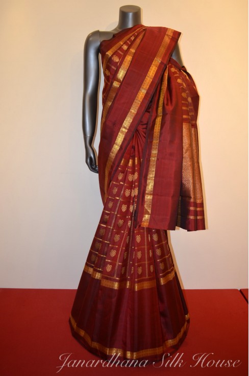 Classic Wedding Zari Checks & Zari Buttas Kanjeevaram Silk Saree
