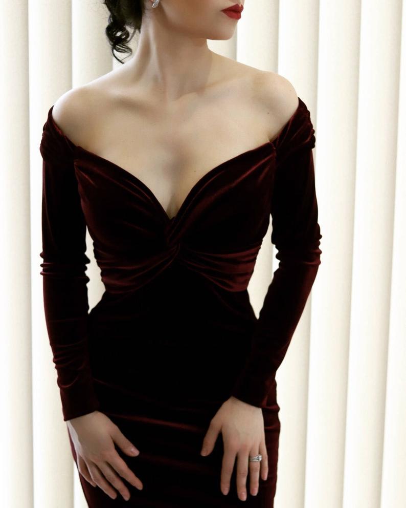 Cocktail dress burgundy velvet dress midi dress evening image 0
