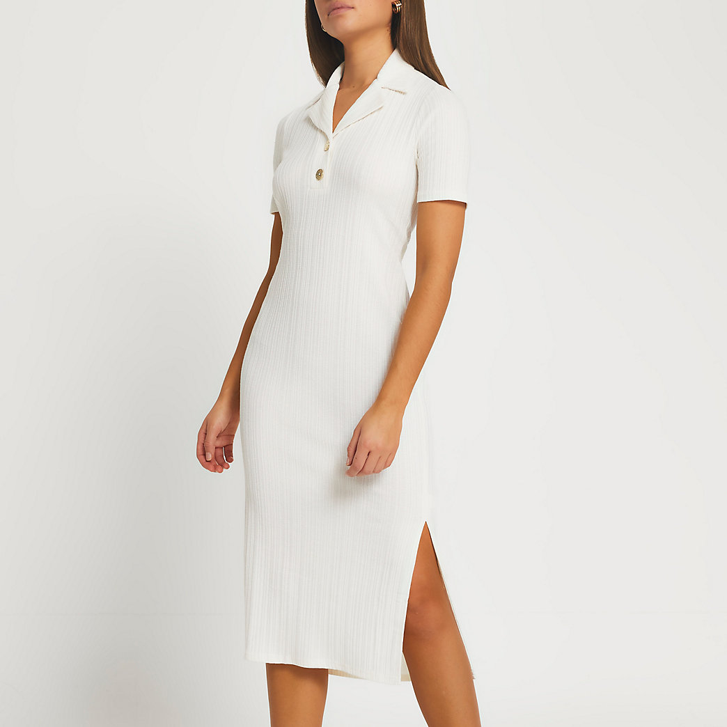 collar neck button midi dress