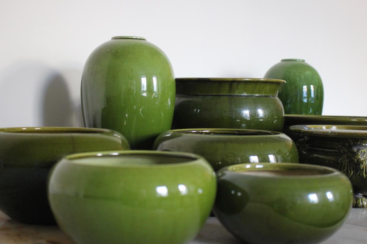 Collection of Early C20th Emerald green Bretby Pottery Vases