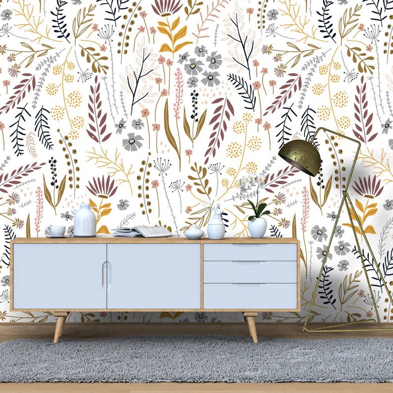 Colorful Leaves on White Abstract Wallpaper Traditional Non image 0