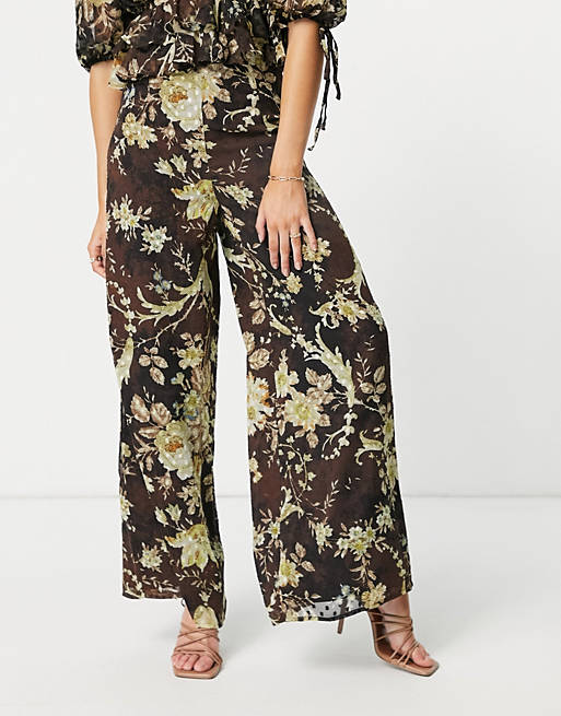 coordinating wide leg pants with lace insert detail in multi floral, 1 of 4