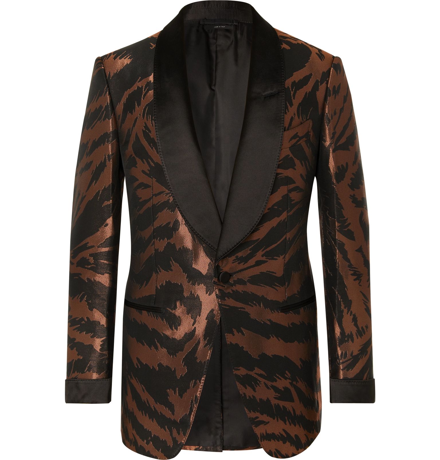 Copper Slim-Fit Satin-Trimmed Zebra-Jacquard Tuxedo Jacket
