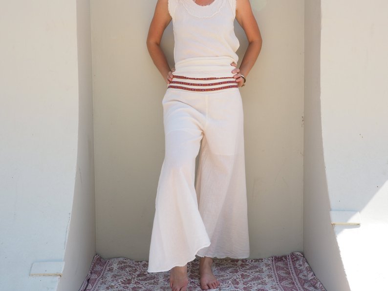 Cotton Flow Pants in CREME NATURAL // Partially Lined, Natural Fiber, Breathable, Flexible Waistband // Stretch & Play with Elegance!