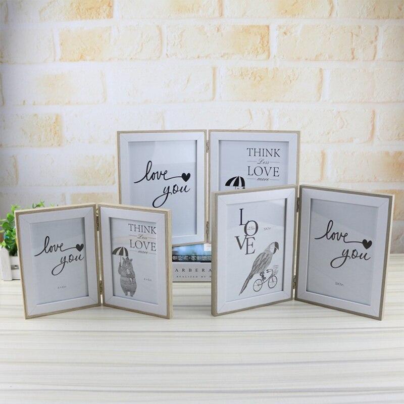 Creative Household Wooden Three Floding Photo Frames Ornaments Glass Photo Frames Desktop Crafts Home Decoration Birthday Gifts