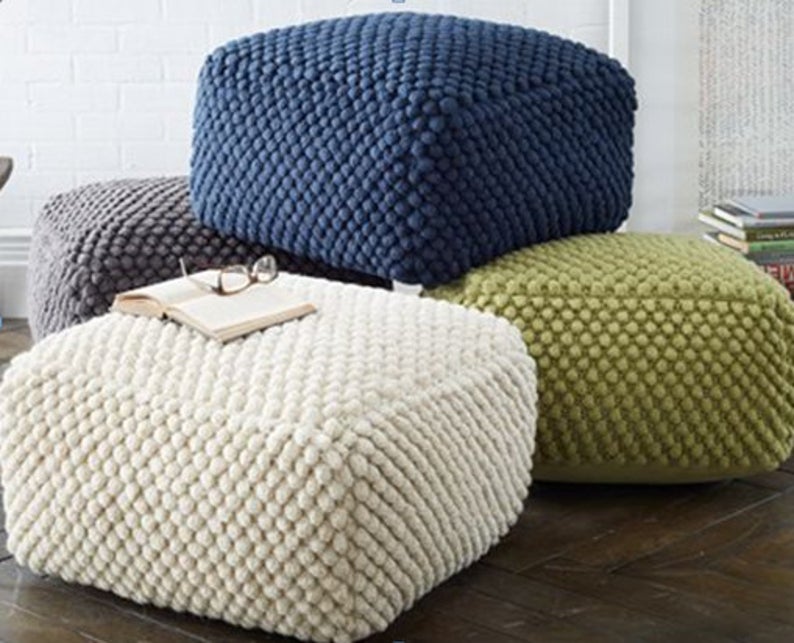 Crochet grey/white/blue/green pouf-ottoman / Knit stuffed image 0