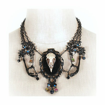 Crow Skull Necklace, goth crow necklace black goth necklace statement necklace