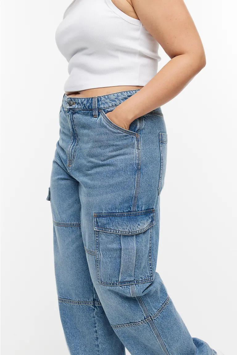 Curvy Fit Straight High Cargo Jeans - Denim blue - Ladies