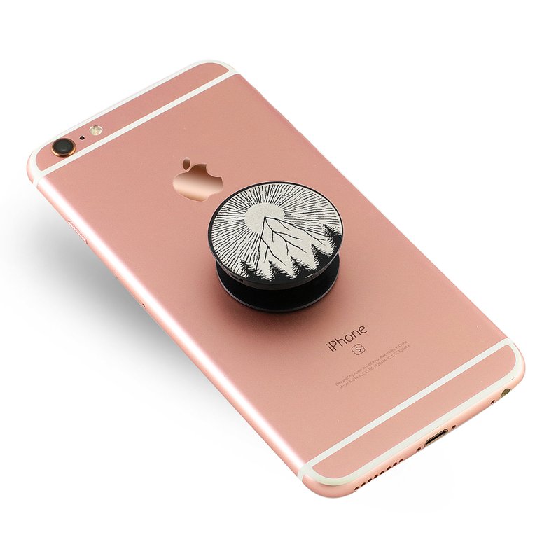 Custom Engraved Phone Grip and Stand with Morning Light Design Black Aluminum Phone Grip NOT A STICKER or DECAL - Custom Orders Available