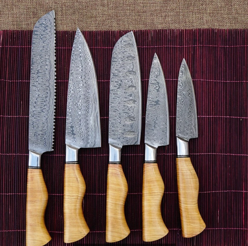 Custom Handmade Damascus Steel Knife Sets – 5 Pieces