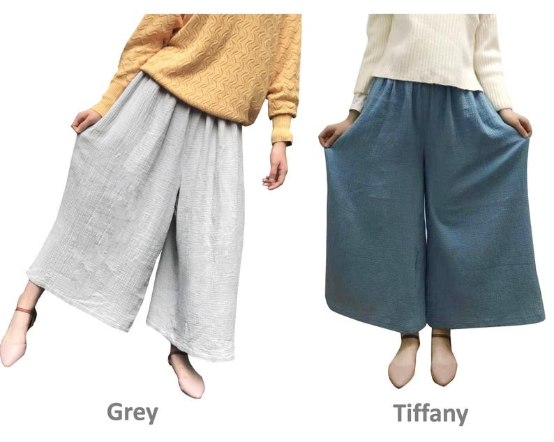 Customize Muslin Maxi Yoga Pants, Wide Leg Casual Loose Cotton Large Size Trousers with Elastic Waist Breathable Comfortable