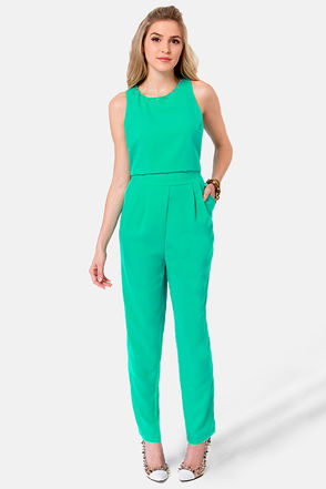 Cute Studded Jumpsuit - Green Jumpsuit - $59.00