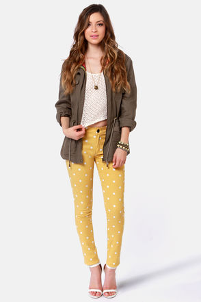 Cute Yellow Pants - Polka Dot Jeggings - $53.00