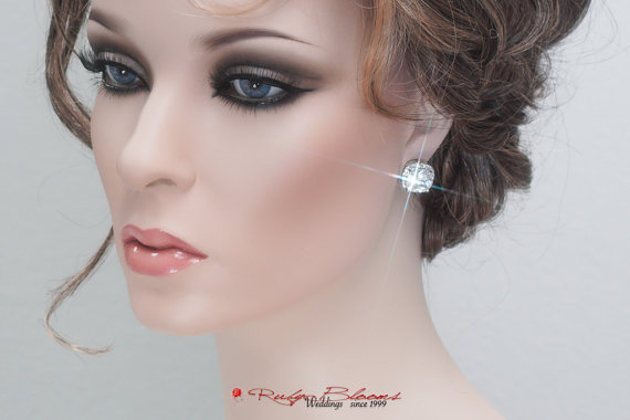 CZ Bridal Stud Earrings, Crystal Stud Earrings, Bridal Post Earrings, Cubic Zirconia Earrings Silver Bling Bridal Earrings, Gift CZ Earrings