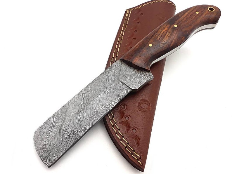 Bull Cutter Knife Sheath – Handmade Damascus Blade & Rosewood Handle | Custom Ranch EDC