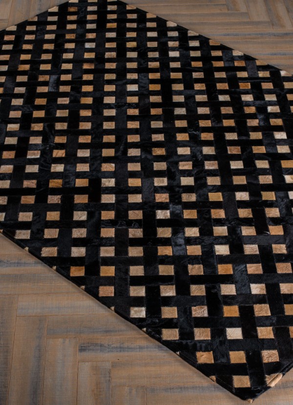 Dark Woven - Black & Brown Patchwork Cowhide Rug - Modern Geometric - Mosaic Hides