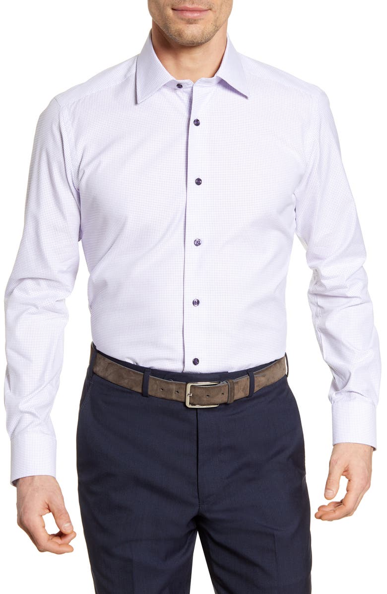 DAVID DONAHUE Trim Fit Check Dress Shirt, Main, color, WHITE/ LILAC
