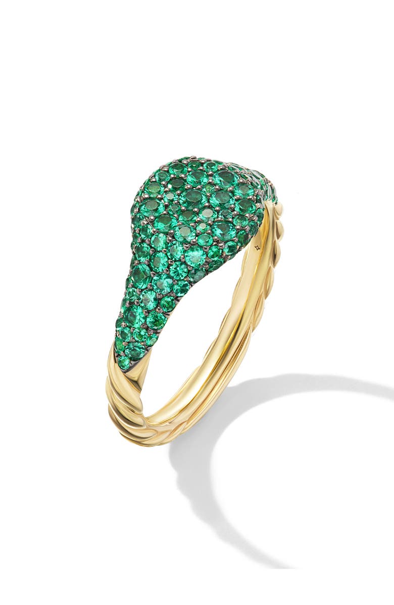 David Yurman Petite Pavé Emerald Pinky Ring in 18K Gold, Alternate, color, 18K Yellow Gold