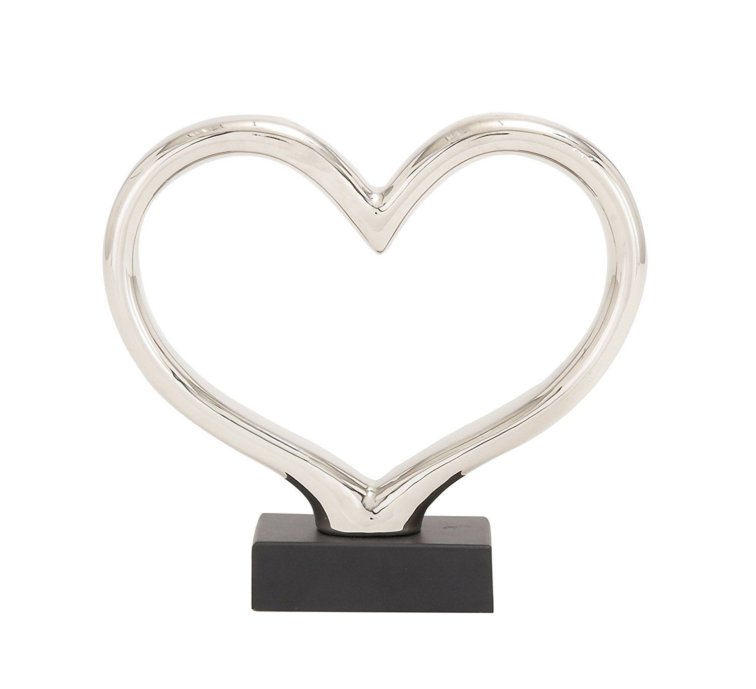 Deco 79 92903 Ceramic Silver Abstract Heart Sculpture