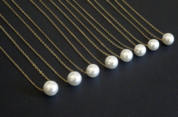 Delicate white pearl necklace, 14k gold fill, Sterling silver, Rose Gold Floating pearl necklace, single pearl Bridesmaid necklace