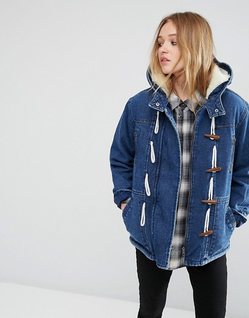 Denim Duffle Coat with Borg