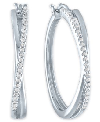 Diamond Crossover Hoop Earrings (1/4 ct. t.w.) in Sterling Silver