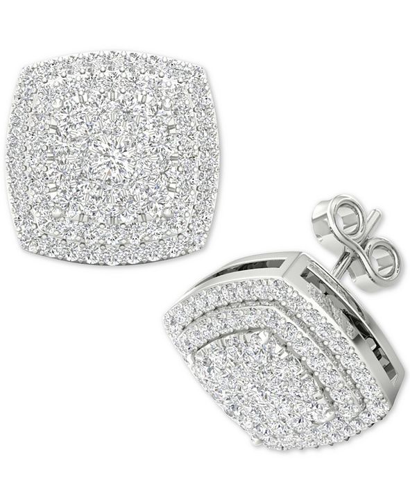 Diamond Square Cluster Stud Earrings (1/2 ct. t.w.) in Sterling Silver