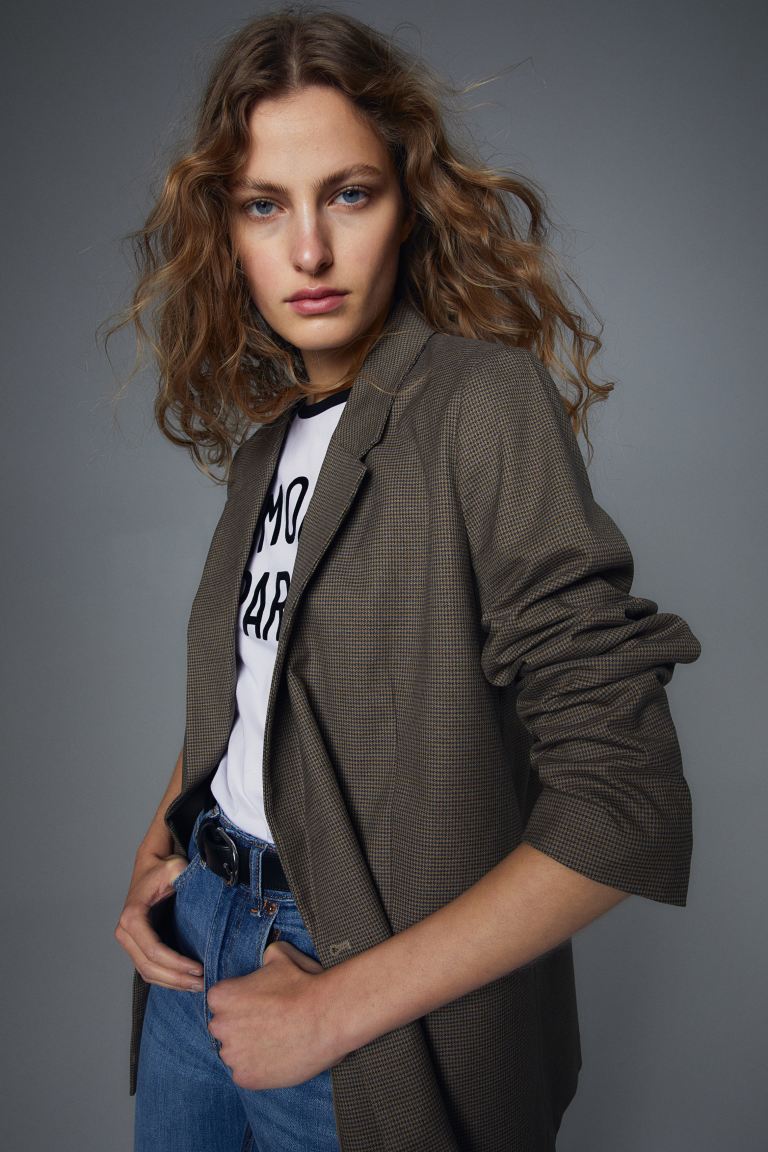Double-breasted Jacket - Brown/checked - Ladies
