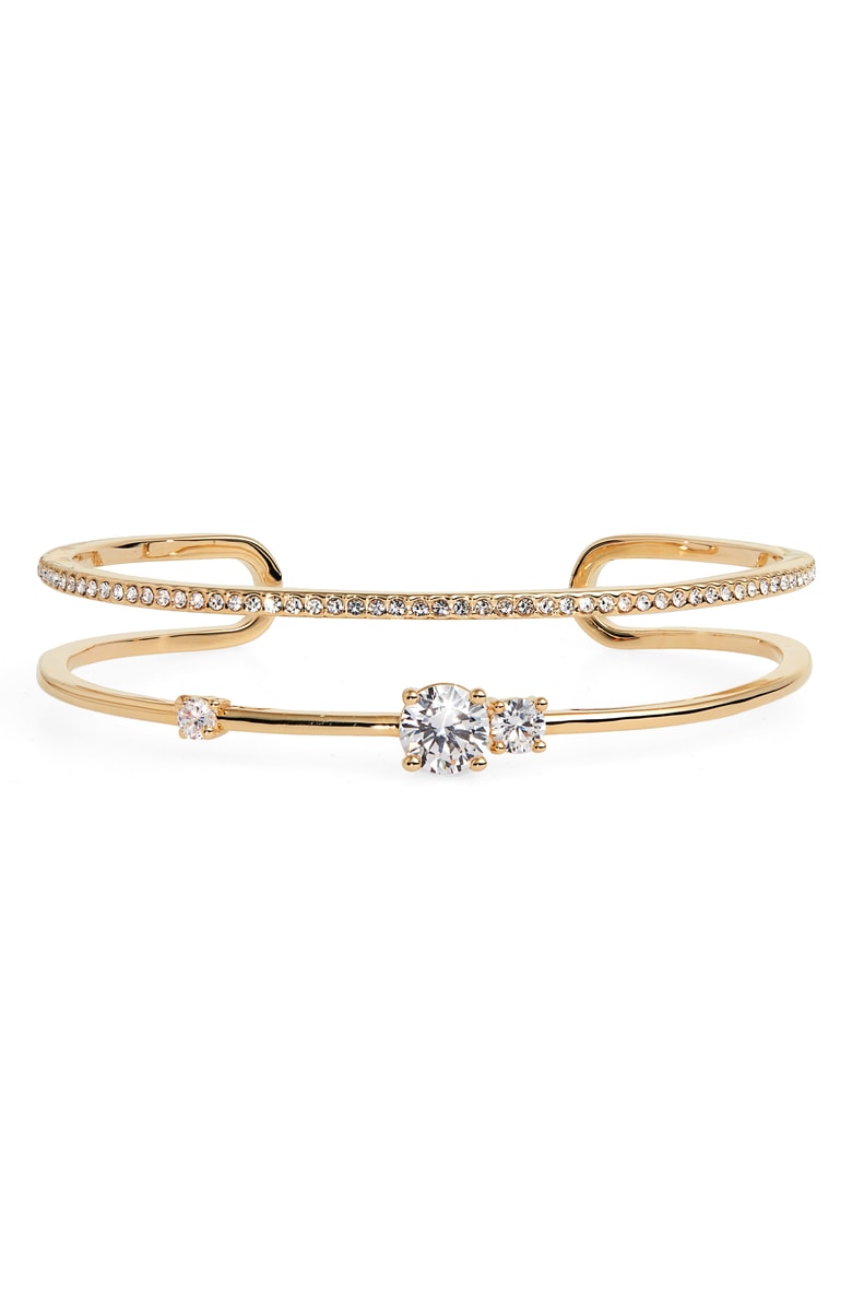 Double Row Pavé Cuff, Main, color, CLEAR- GOLD