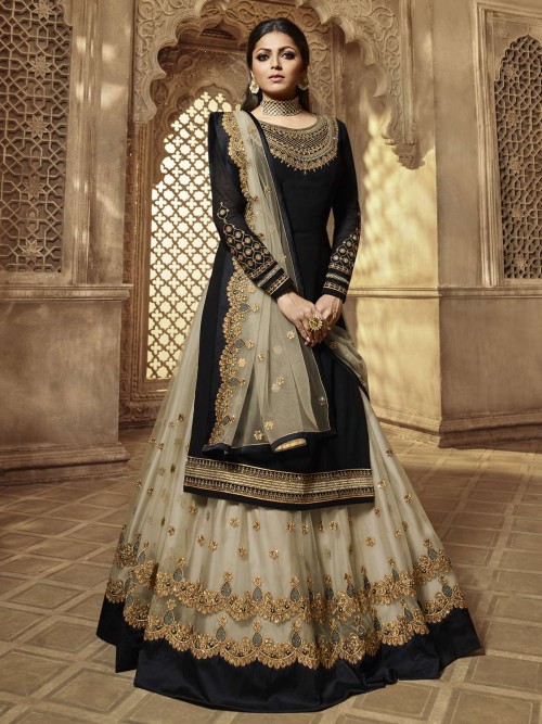 Drashti Dhami Black Georgette Lehenga Style Suit