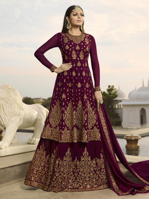 Drashti Dhami Magenta Georgette Embroidered Lehenga Style Suit