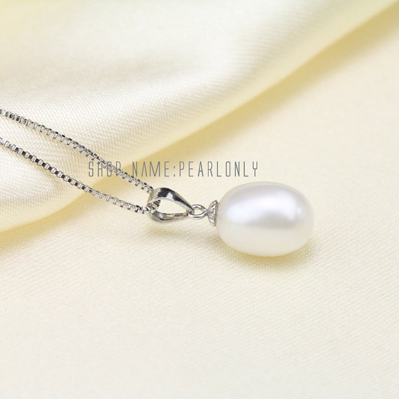 drop pearl pendant, freshwater pearl drop pendant, ivory white tear drop pearl pendant.
