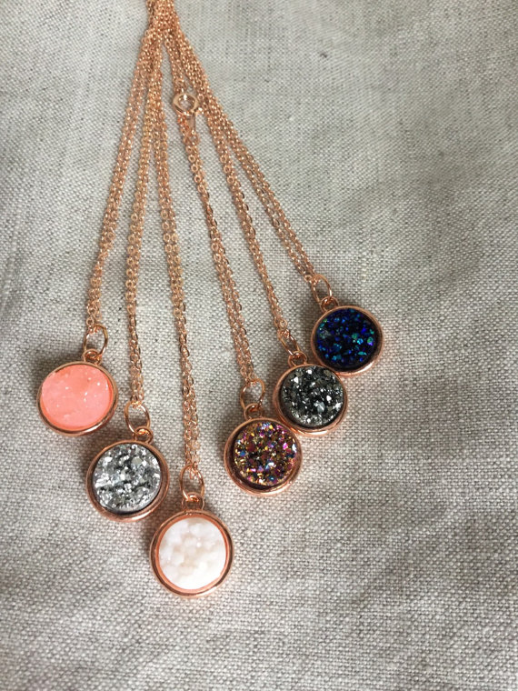 Druzy Necklace, rose gold necklace, rose gold druzy, Faux Druzy Necklace, Druzy Pendant, Boho Jewelry, Druzy Necklace