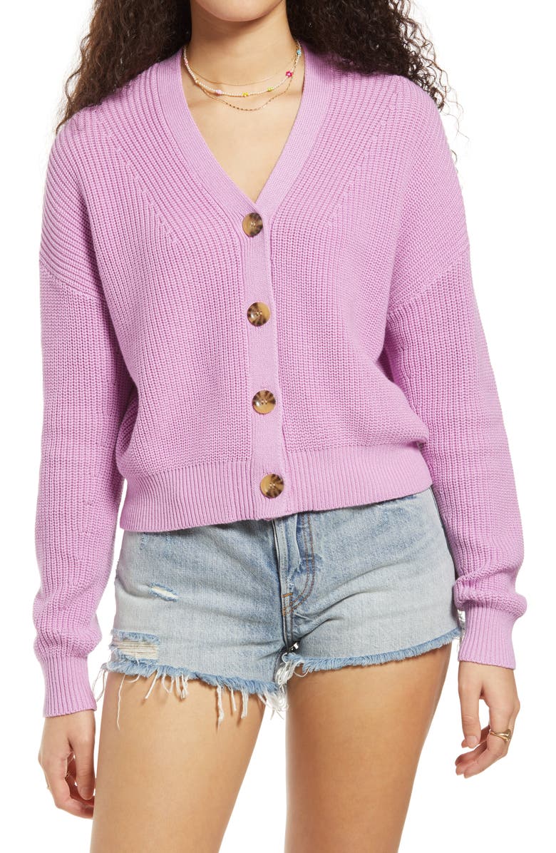 Easy Button Front Cardigan, Main, color, PURPLE TULIP