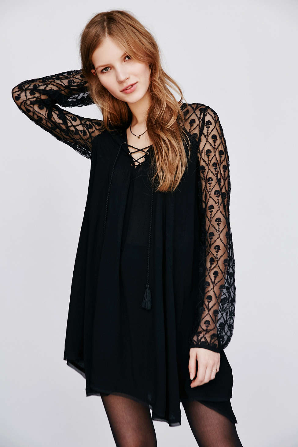 Ecote Aura Embroidered Mesh Sleeve Dress - Urban Outfitters