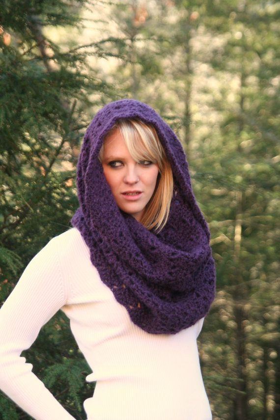 Eggplant Purple - Textured Chunky Cowl Scarf Snood or Capelet Winter Fashion