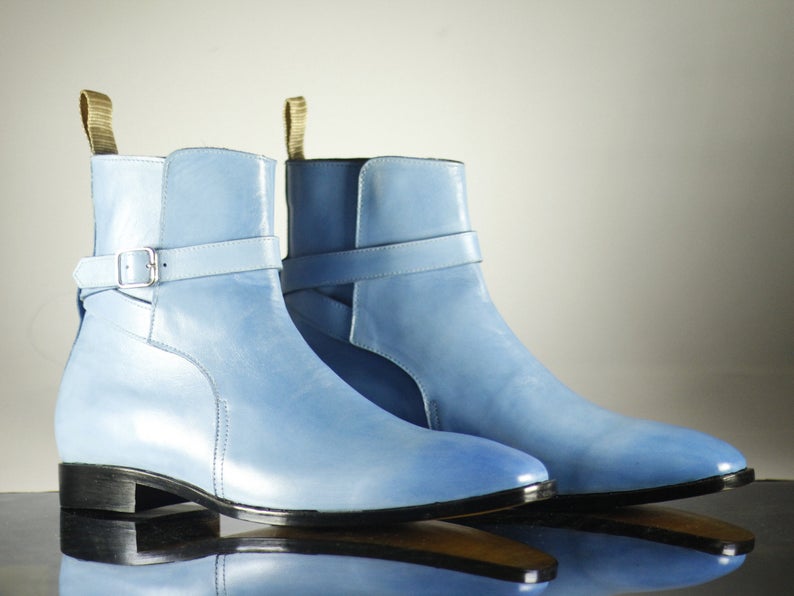 Elegant Blue Leather Jodhpurs Ankle High Lace Up Fashion Strap image 0