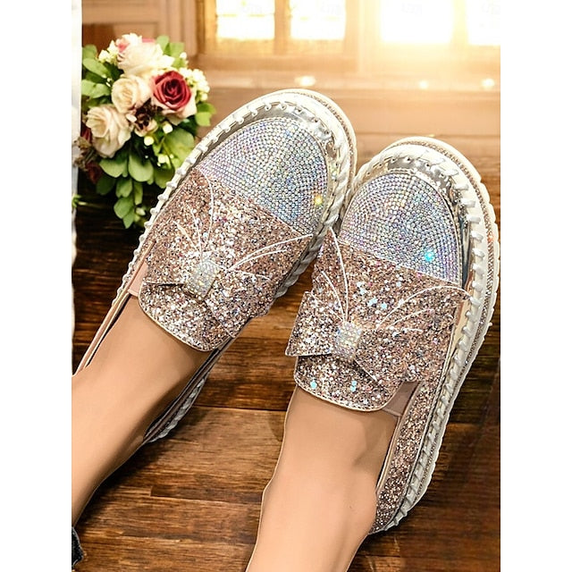 Elegant Rhinestone Bowknot Wedding Flats - Sparkling Open-Toe Sneakers for the Stylish Bride
