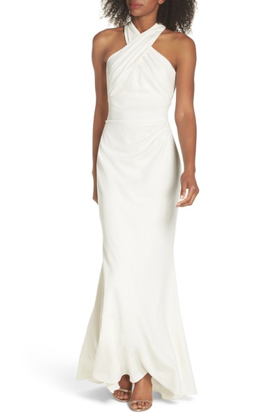Eliza J Side Pleat Crossneck Gown (Regular & Petite)
