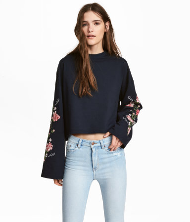 Embroidered Sweatshirt | Dark blue/floral