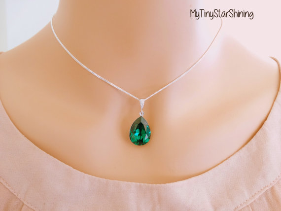Emerald Necklace Green Emerald NecklaceTeardrop Necklace Sterling Silver Necklace Wedding Jewelry