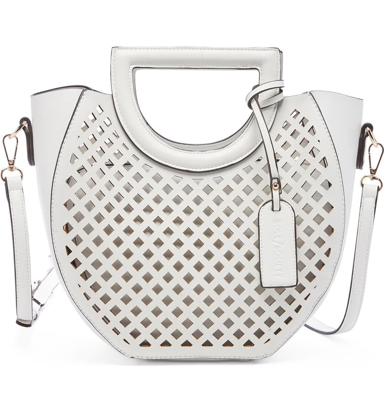 Eppie Perforated Faux Leather Satchel, Main, color, WHITE