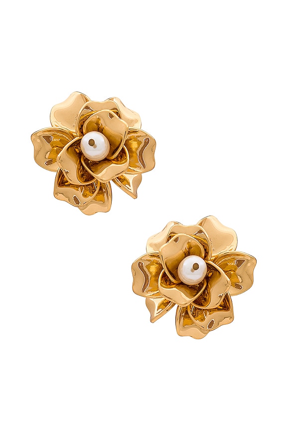 Ettika Flower And Pearl Earrings in Gold | REVOLVE