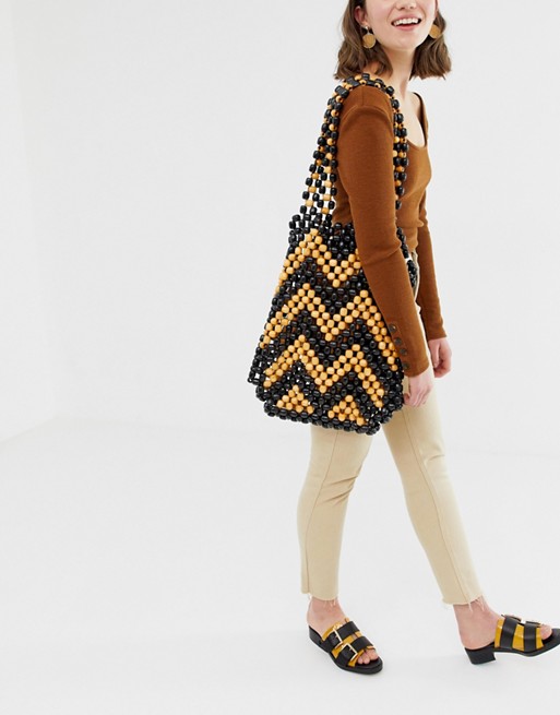 Exclusive large wooden beaded shoulder bag