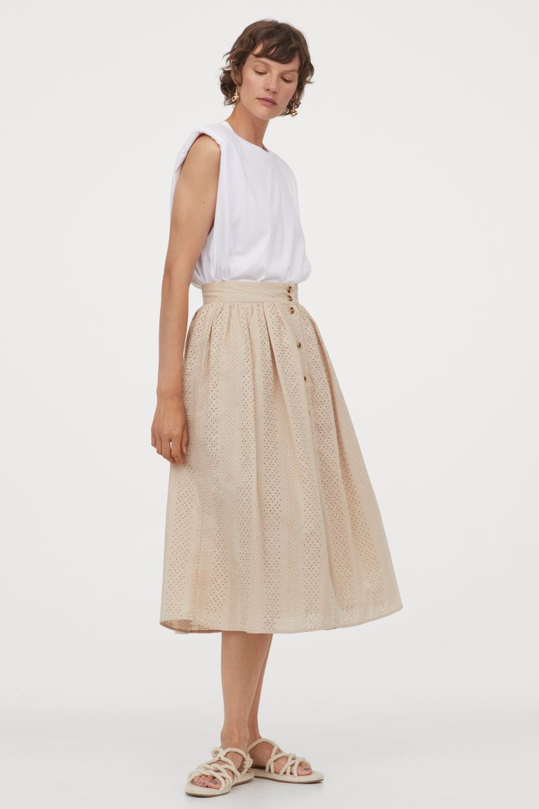 Eyelet Embroidery Skirt - Light beige - Ladies