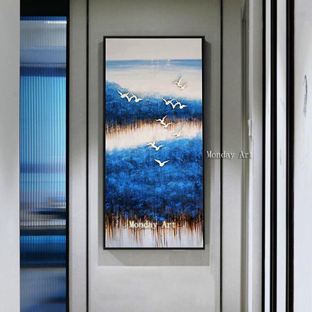 Fashion abstract wall art Hand Painted long canvas picture Modern landscape oil painting home decorative
